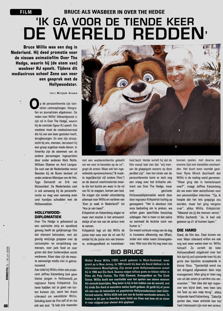 Bruce Willis over animatiefilm Over the Hedge